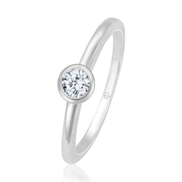 Verlobungsring Unique mit einer wundervollem Zargenfassung in der ein Brillant mit 0,20 ct gefasst ist. Zu diesem Antragsring kann ideal ein Vorsteckring getragen werden. Erleben Sie dieses exklusive Modella auch vor Ort in Ihrer Trauringschmiede.